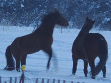 Meanwhile, we put Danny back on the Regumate. This time he didn't mellow out, and behaved so badly we didn't dare leave him with the geldings. By then we had learned that when a previous owner had brought a mare home, even though she was in a separate pen, Danny had nearly killed his gelding pasture mate and tore up his pasture fence trying to get at the mare..